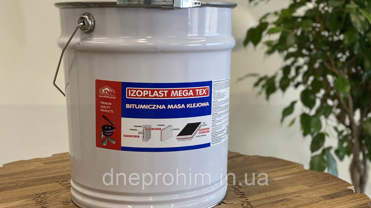 Бітумна маса для приклеювання плит утеплювача, на основі органічного розчинника Izoplast Mega-Tex 23 кг.