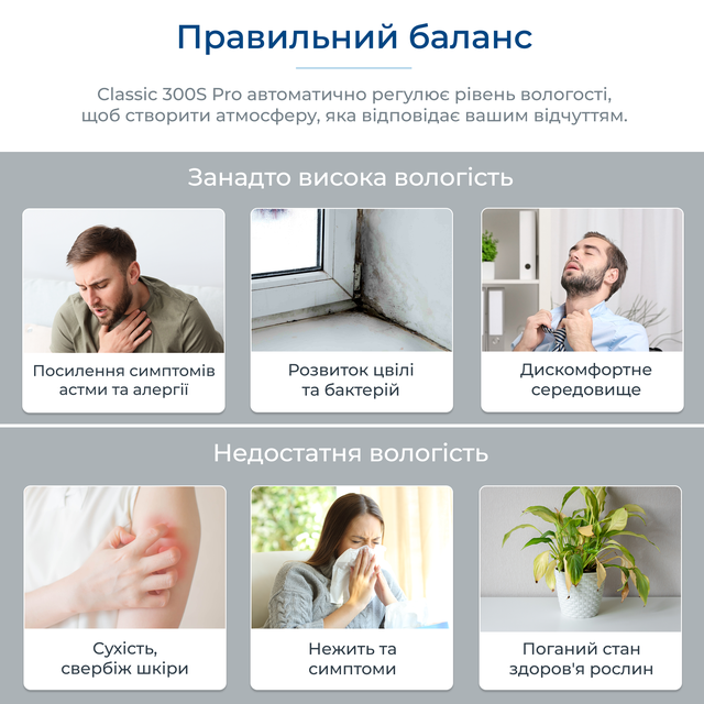 Заспокоюйте поширені симптоми алергії, як-от кашель, закладеність, біль у горлі та сухість шкіри за допомогою прохолодного зволожувального туману.